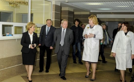 Следующим пунктом поездки стала «Городская поликлиника №2», которая этим летом, преодолев конкуренцию сотен других учреждений по всей стране, вошла в десятку лучших в России. Одна из составляющих её успеха – внедрение клиентоориентированных технологий: электронной регистратуры и нового формата работы врачей.